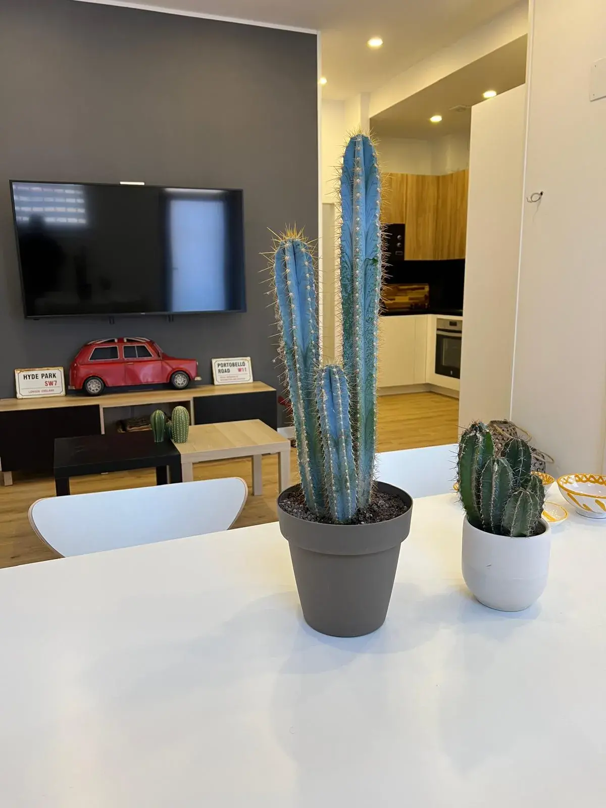 It has two bedrooms and two bathrooms plus common areas such as a large living room and kitchen.
