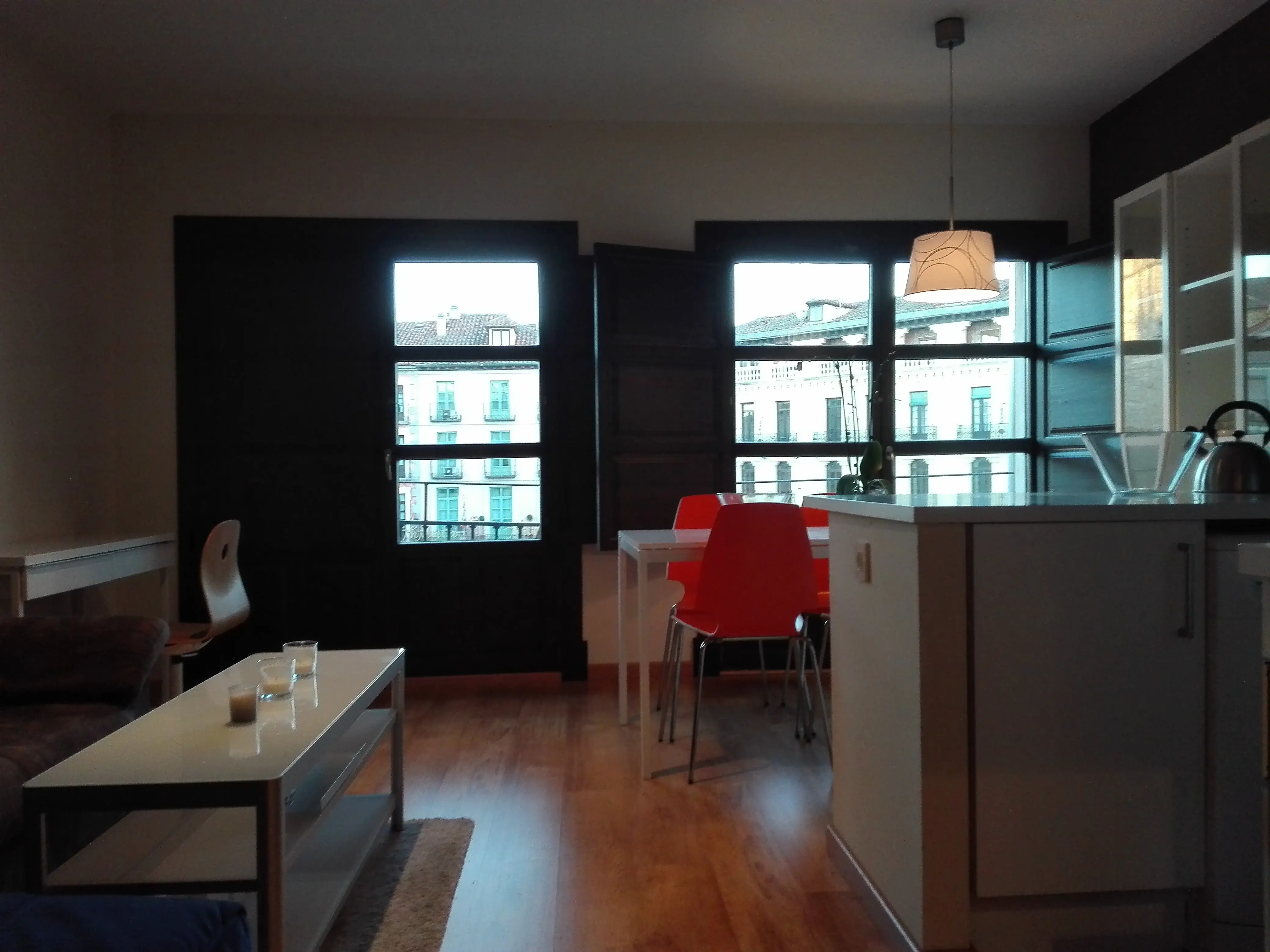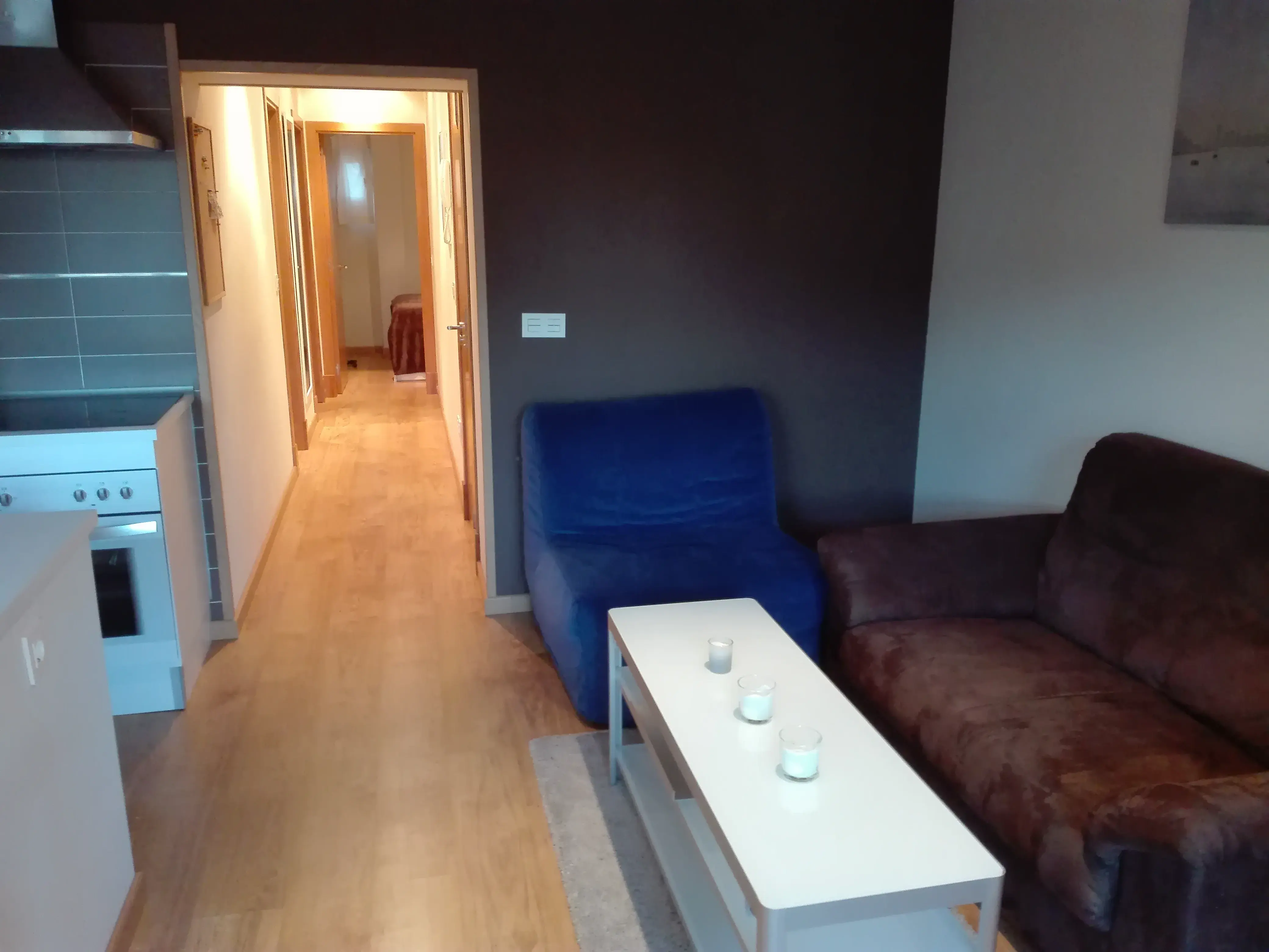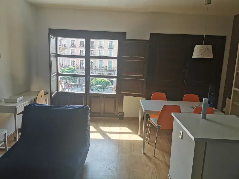 60m2 approximate apartment in Plaza Mayor. The apartment has a big living room with balconies, there is space for two chairs, to Plaza Mayor, kitchen with fridge and freezer, washing machine, oven, stove, microwave, dryer machine and vent, 2 bedrooms with closets and 1 bathroom with shower. The apartment has been fully refurbished, really good isolated, lots of natural light. From the balconies, both mountains and Plaza Mayor can be seen. So close to the taxi stop.
