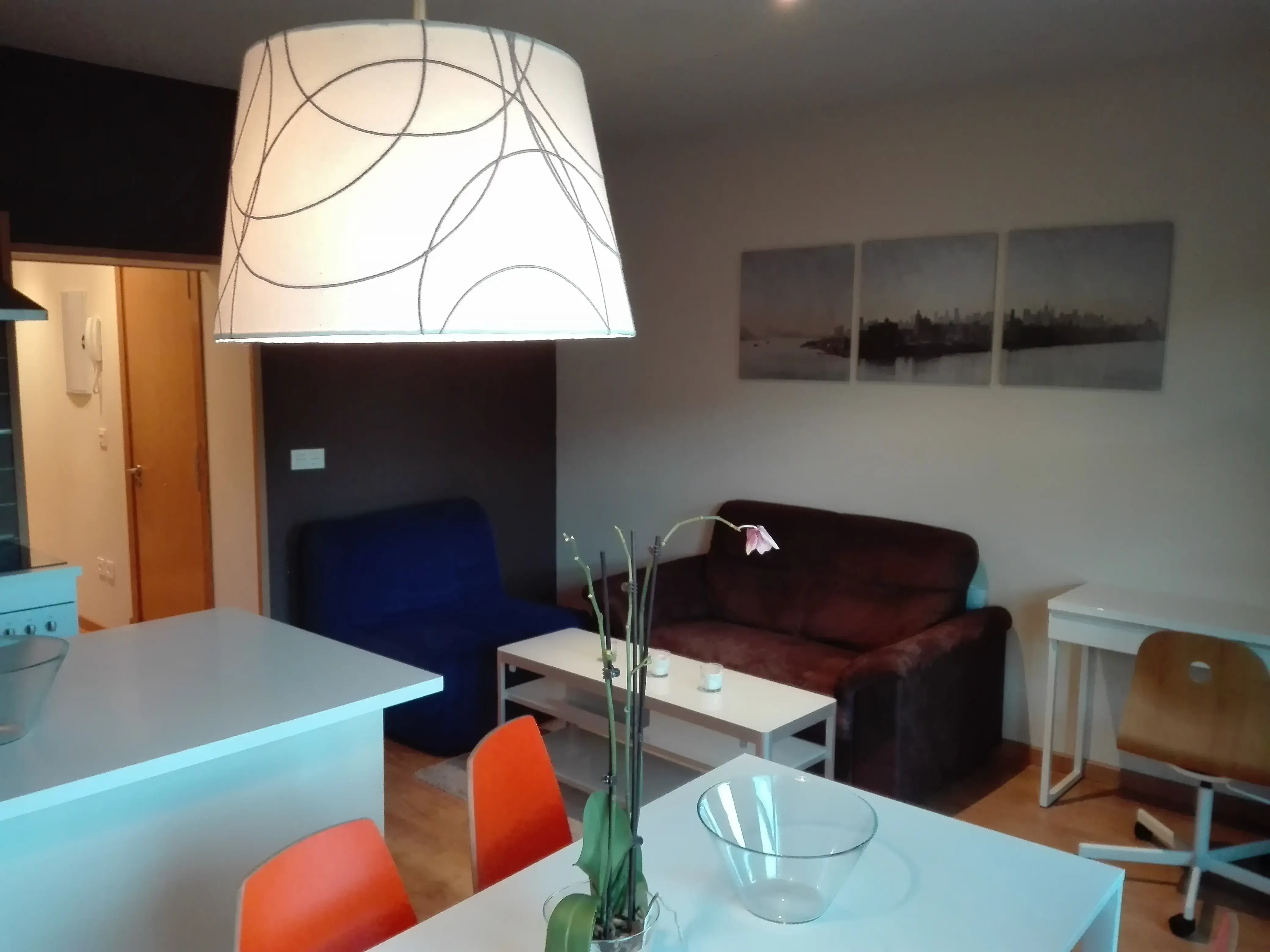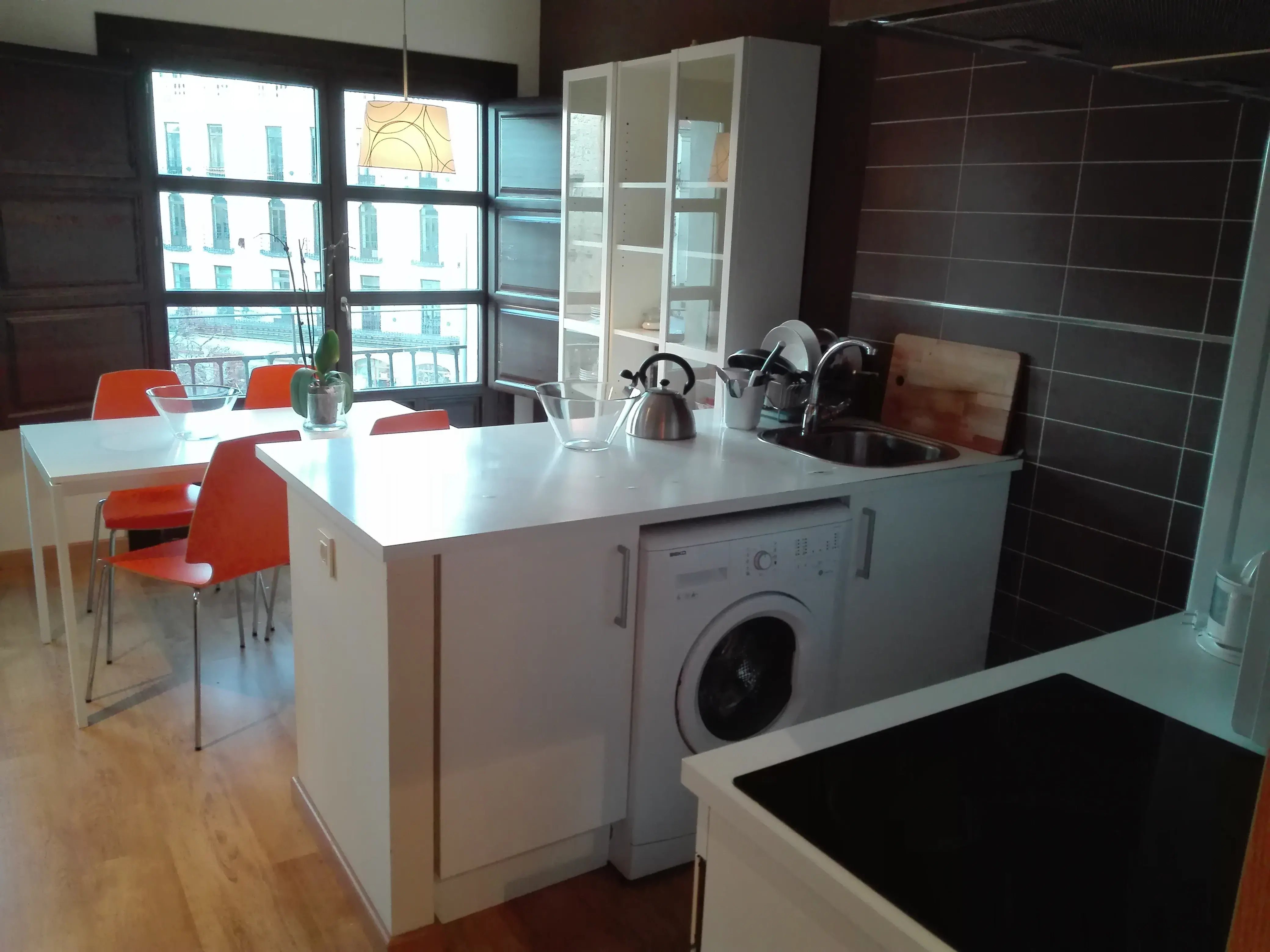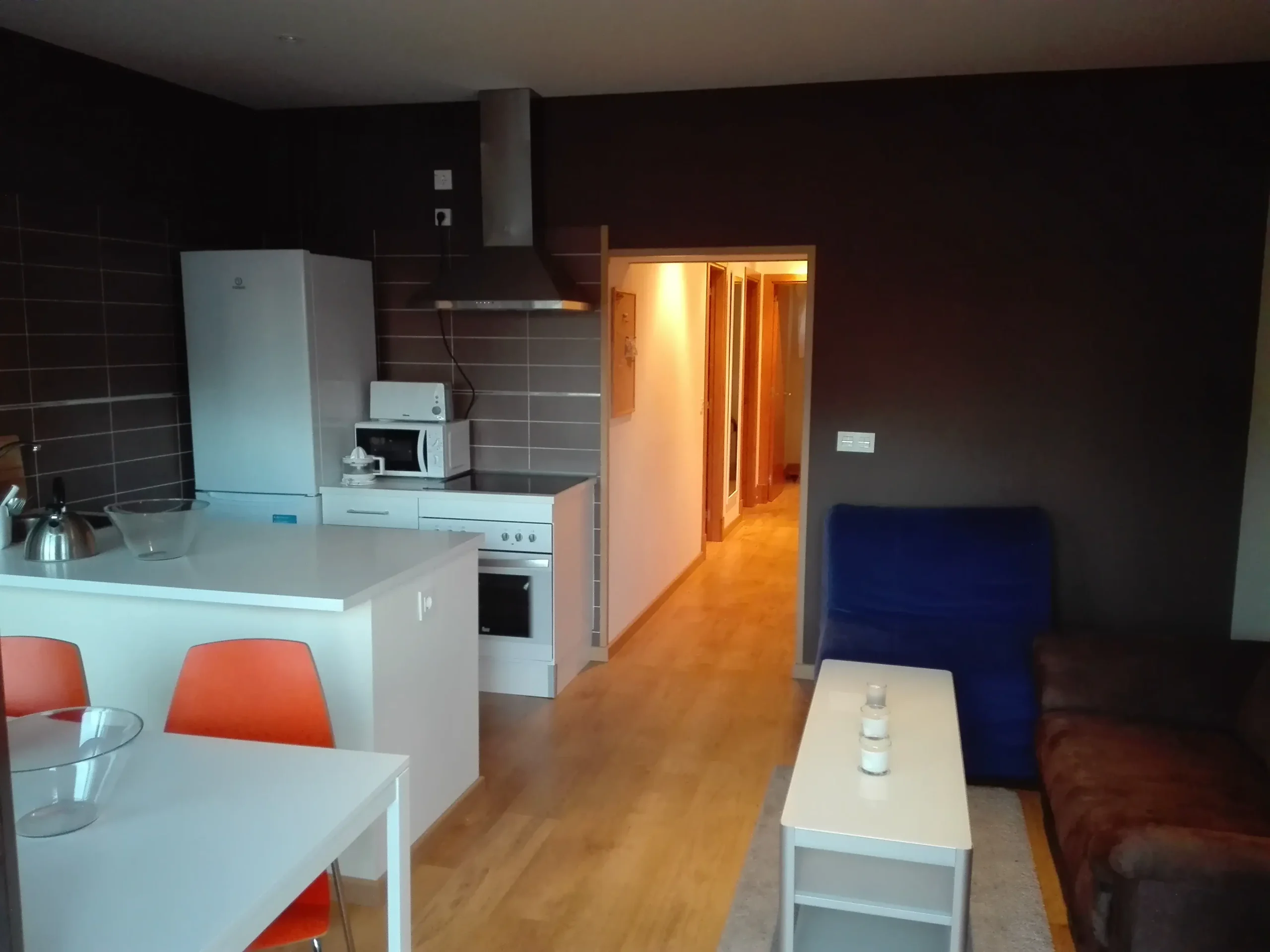 60m2 approximate apartment in Plaza Mayor. The apartment has a big living room with balconies, there is space for two chairs, to Plaza Mayor, kitchen with fridge and freezer, washing machine, oven, stove, microwave, dryer machine and vent, 2 bedrooms with closets and 1 bathroom with shower. The apartment has been fully refurbished, really good isolated, lots of natural light. From the balconies, both mountains and Plaza Mayor can be seen. So close to the taxi stop.