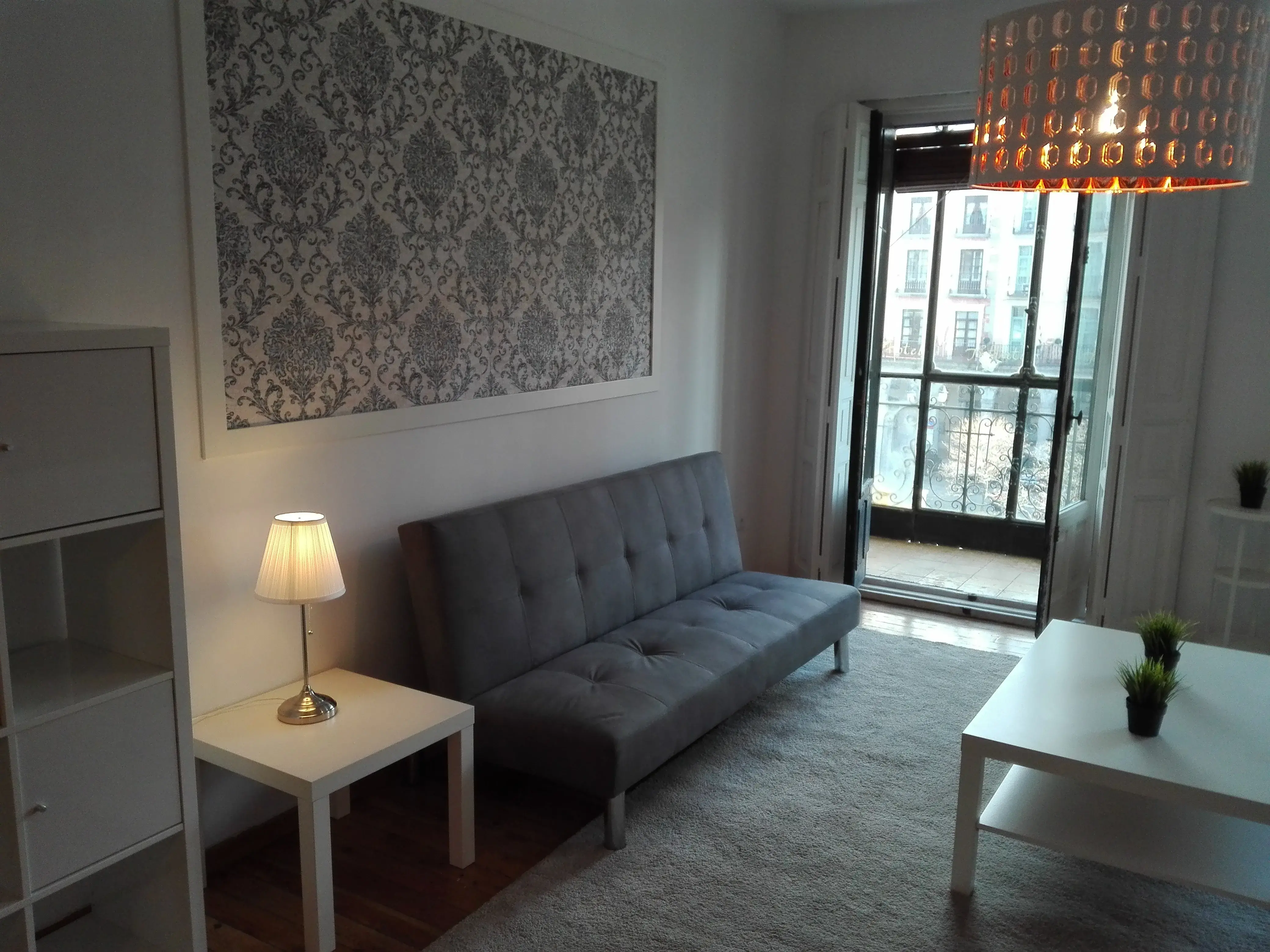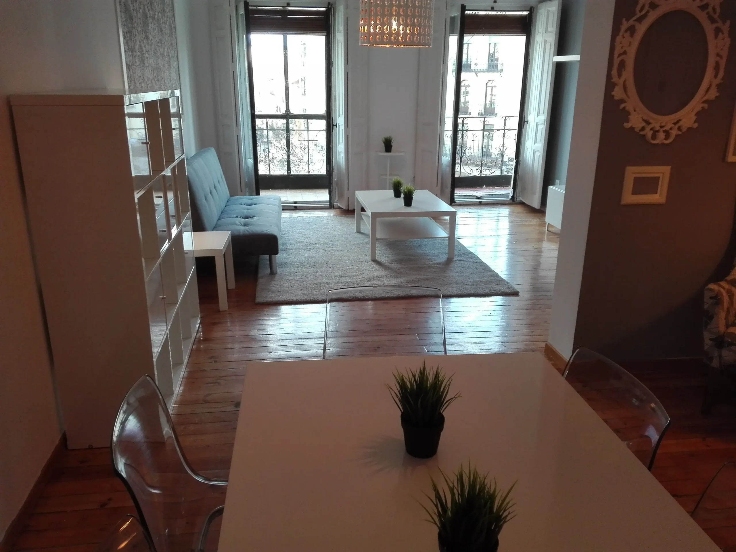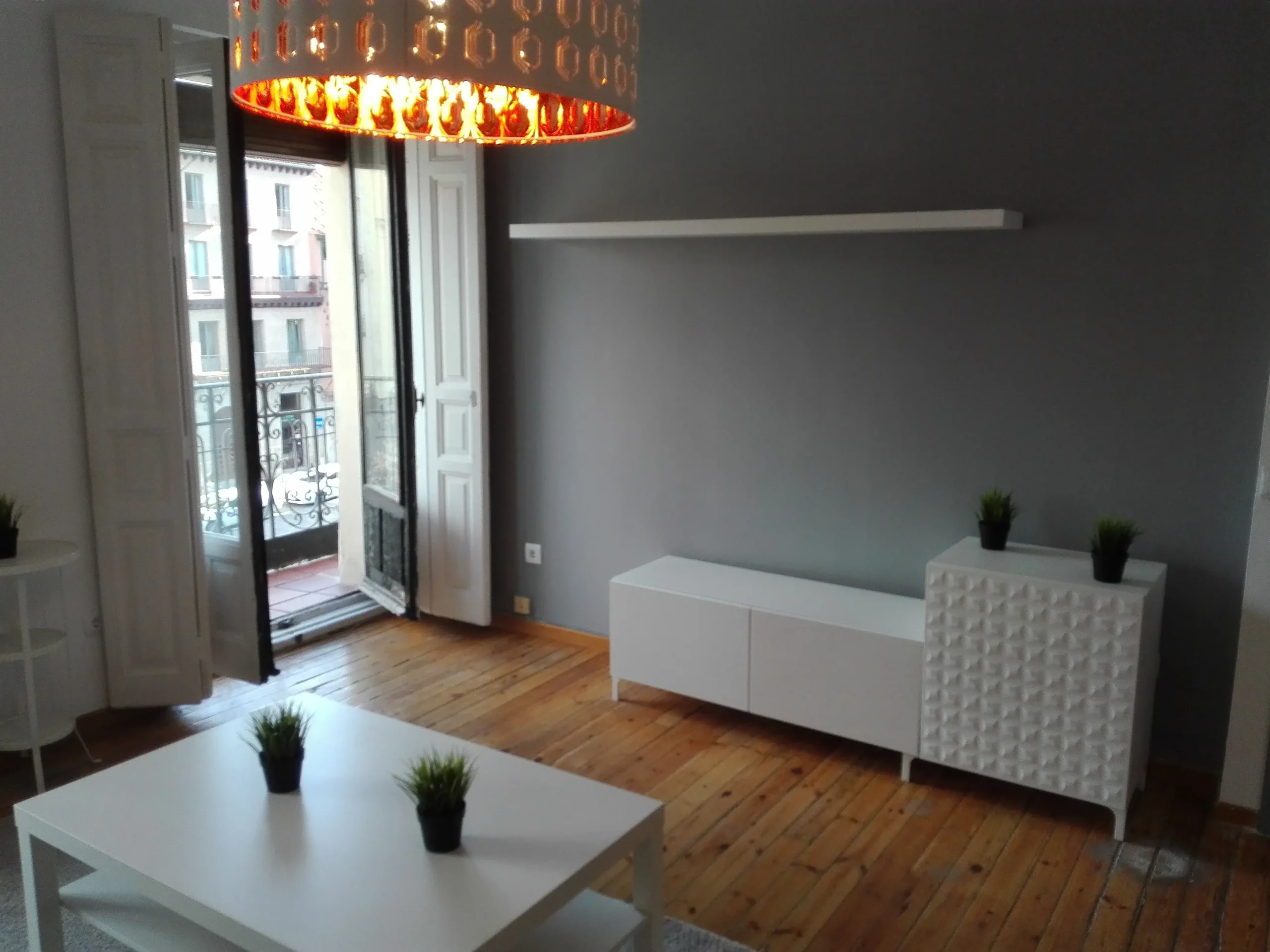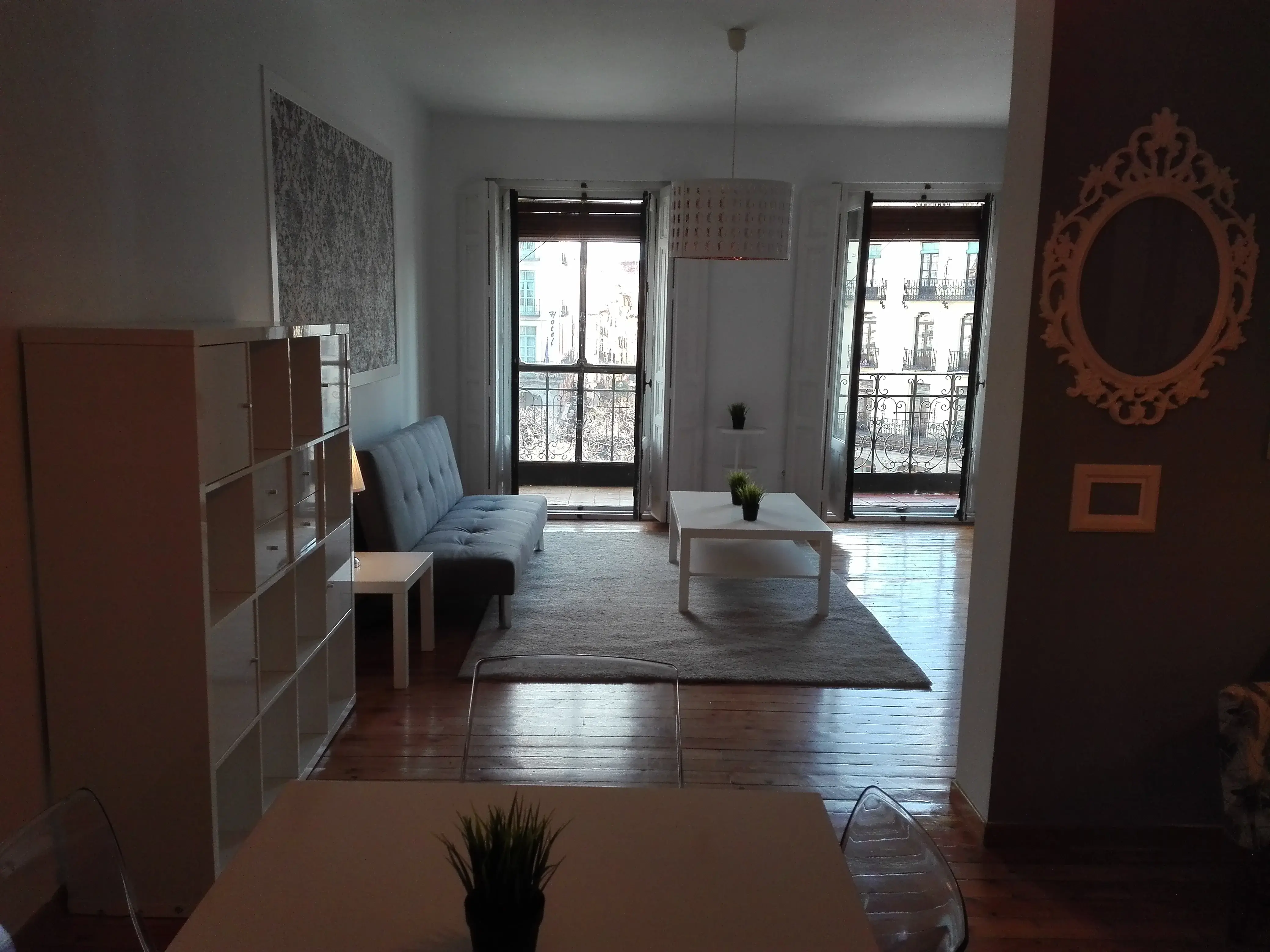 140m2 approximate apartment in Plaza Mayor. The apartment has a big living room with balconies to Plaza Mayor, kitchen with fridge and freezer, dishwasher, washing machine, oven, stove, and vent, 3 bedrooms (one of them en suite) and 2 bathrooms. The apartment has lots of natural light. The furniture is modern and the apartment has LED lights both in the living room and in the kitchen.