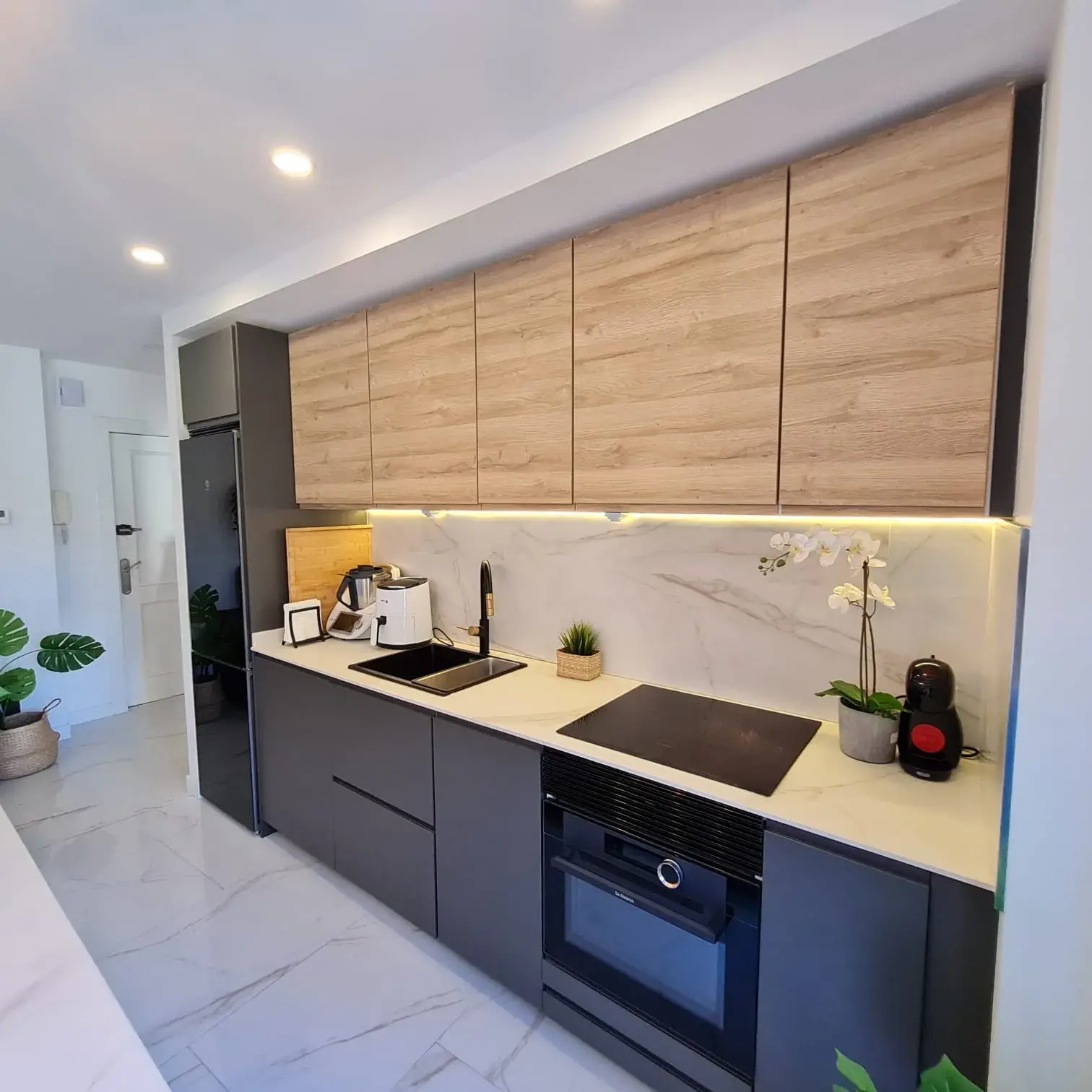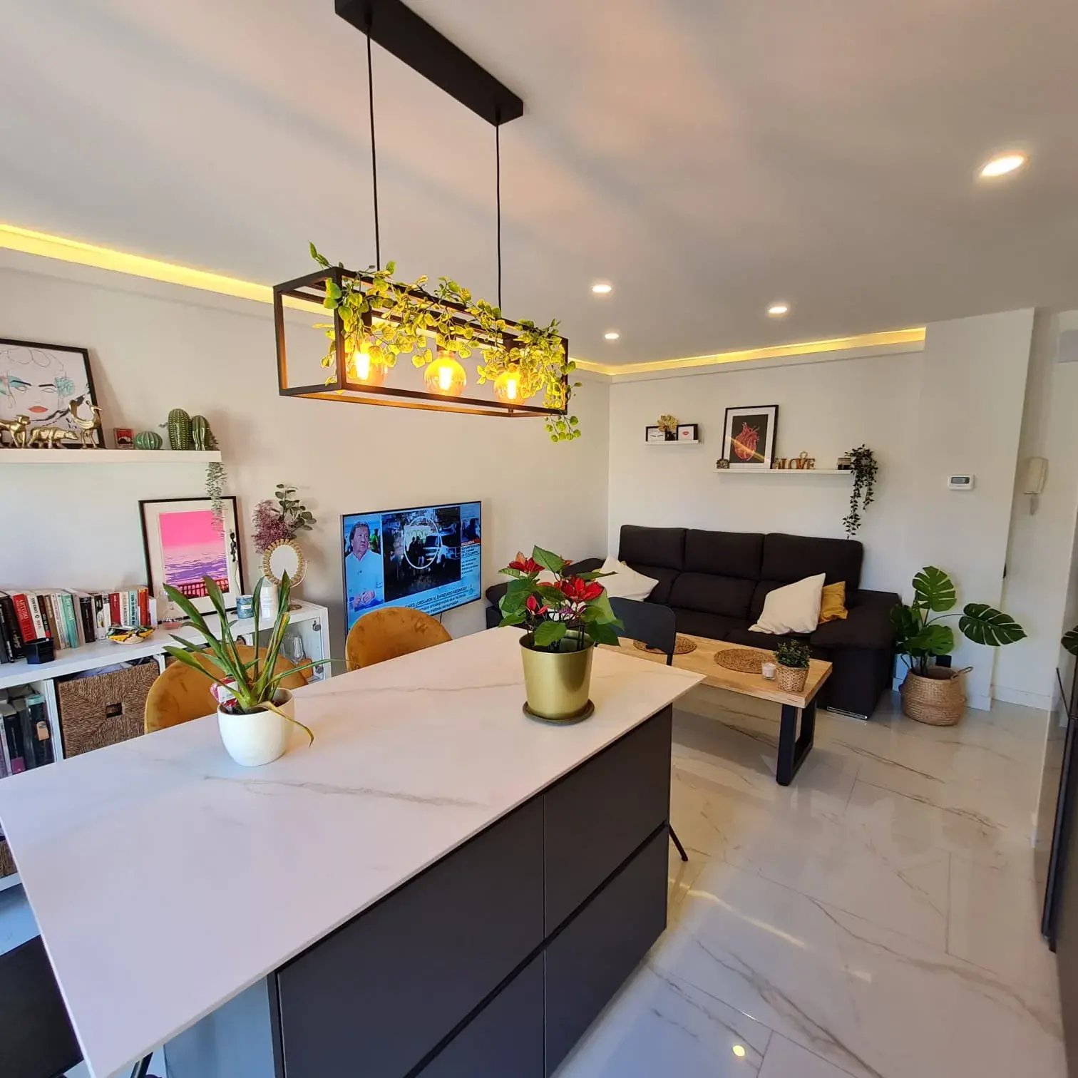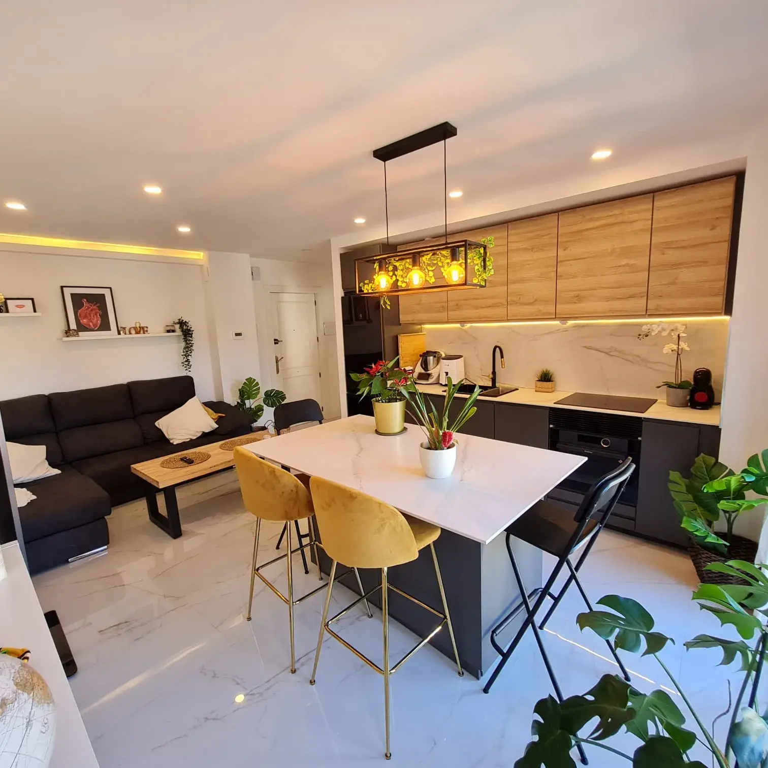 It consists of one bedroom and one bathroom, with modern furniture and common areas such as living room and kitchen.