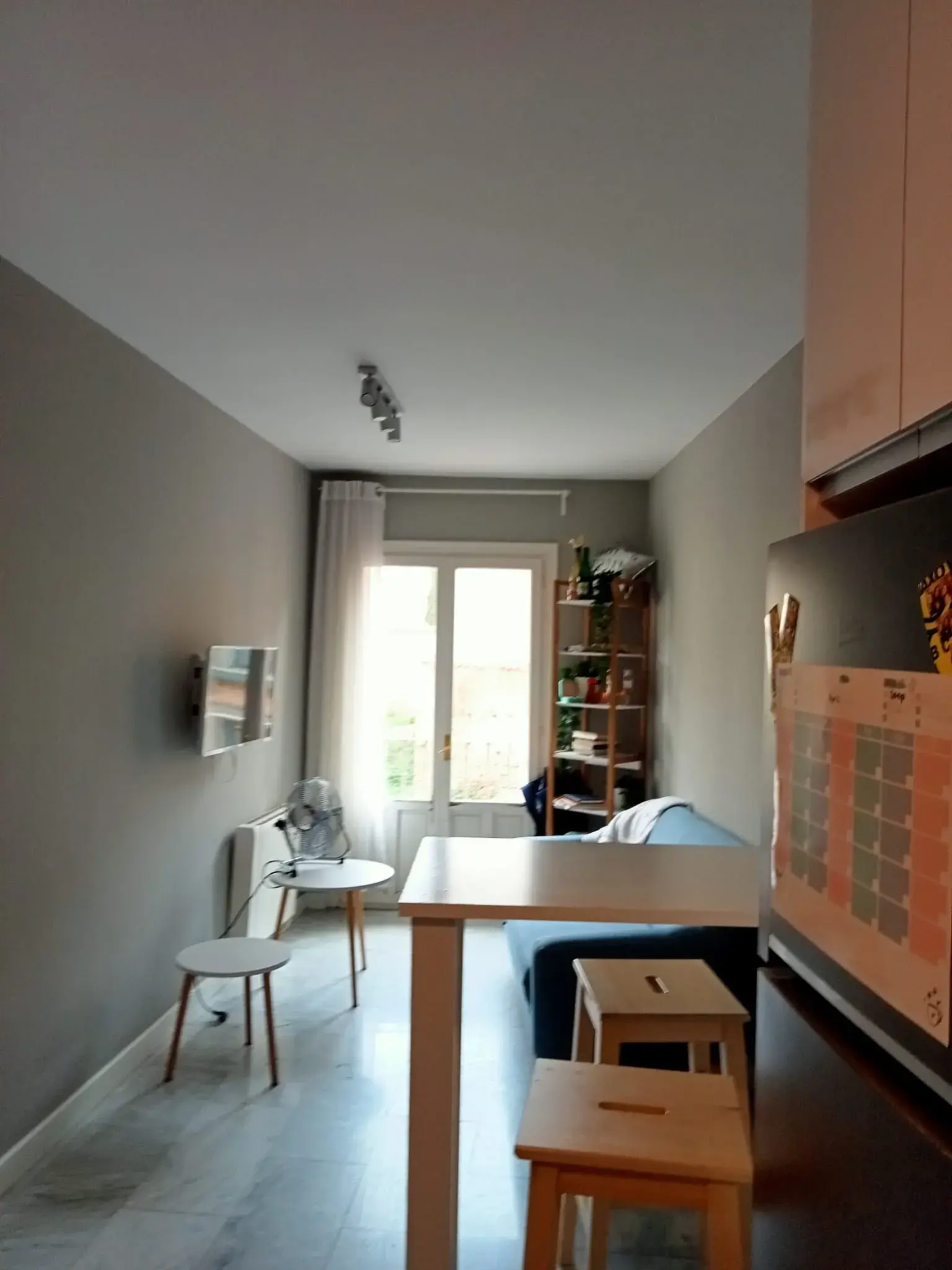 In Plaza Mayor area 5 minutes from Plaza Mayor and 10 minutes from IE. Apartment of approximately 40m2 distributed in living room-kitchen, with ceramic hob, extractor hood, microwave, refrigerator and washing machine. Full bathroom with shower and bedroom with double bed, side table and wardrobe. Very bright, renovated a year ago, furnished in modern lines. All utilities costs are included in the price (heating, water, electricity, WiFi and garbage tax).