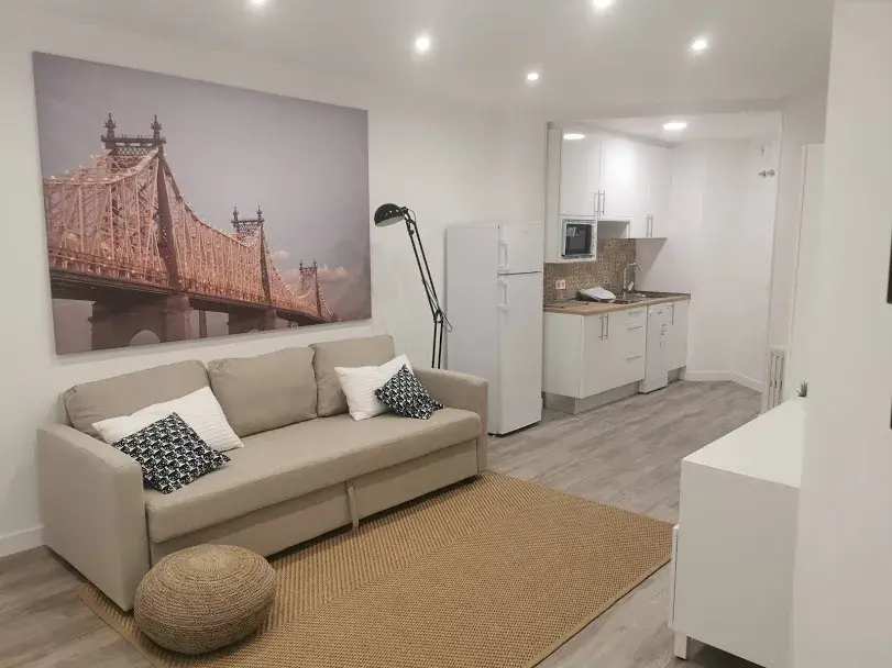 Apartment of approximately 45m2, with a separate bedroom. It has a fully equip kitchen with a fridge, a diswasher, a washing machine, a microwave, a ceramic hob, an extractor hood and an oven. The building has an elevator. Very bright flat with all services included and weekly cleaning. Close to IE university campus.