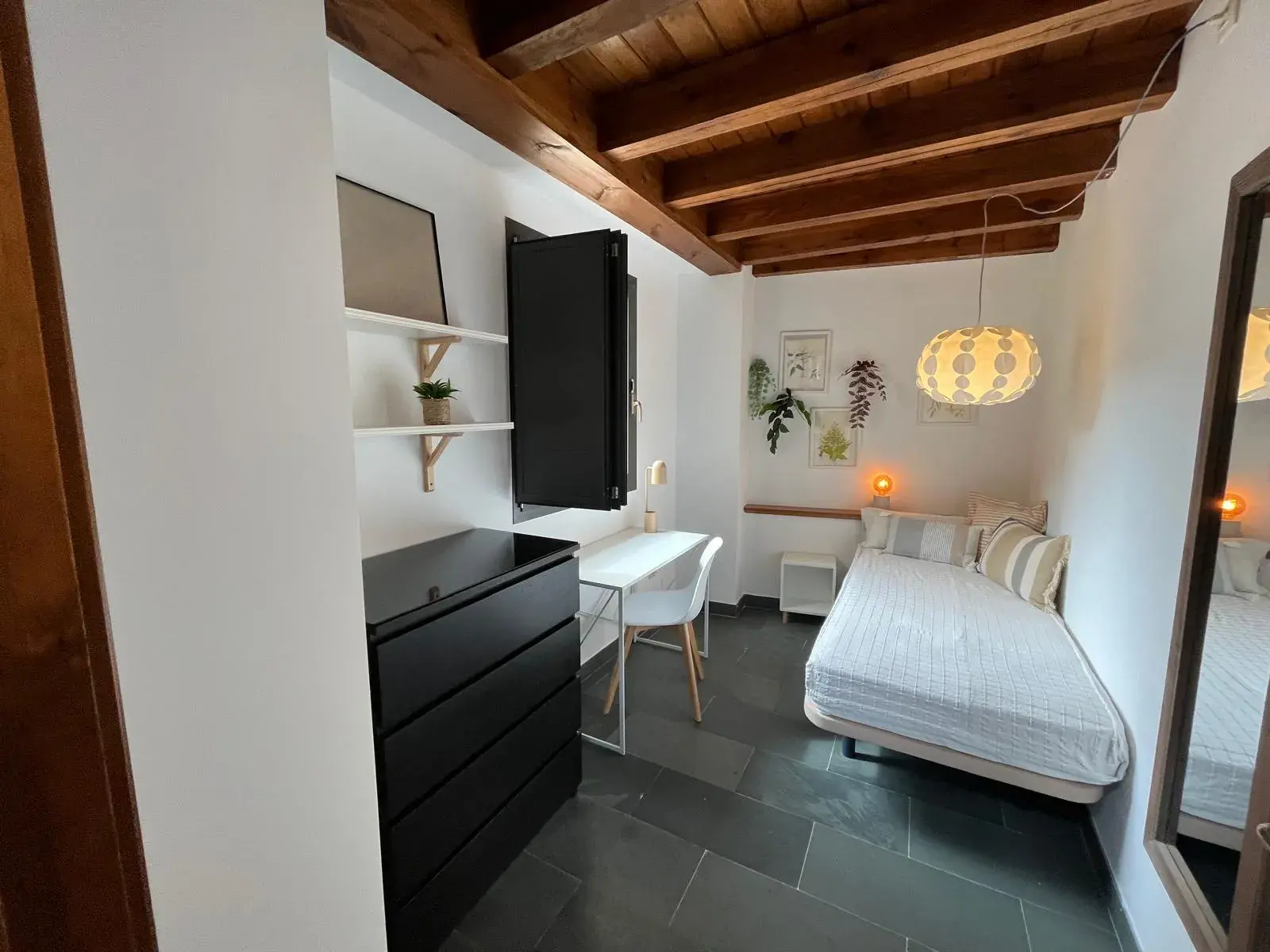 Upstairs, you will find two single beds perfect for resting after a day of study. The kitchen is fully equipped so you can prepare your favorite meals without complications. In addition, the duplex has two bedrooms, a bathroom and a balcony.